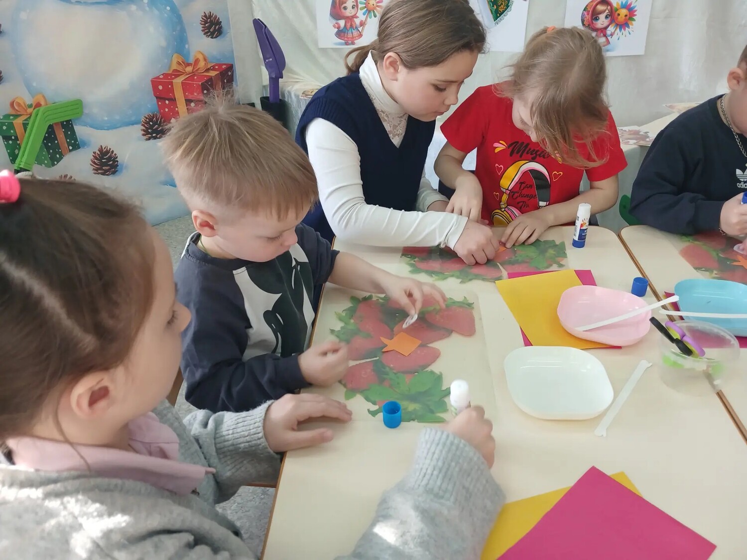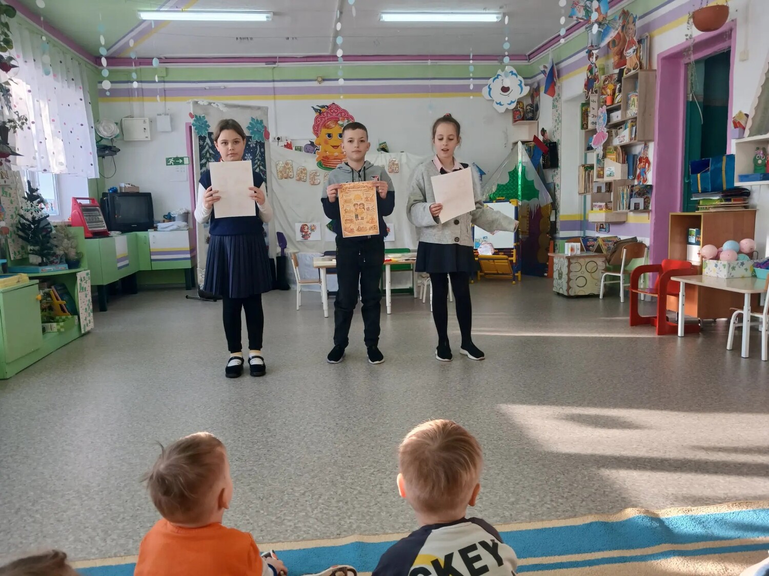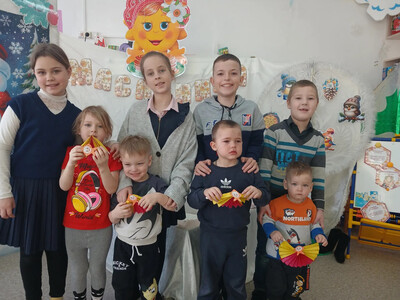 Ученики нашей школы пришли в гости к дошколятам, чтобы поделиться праздничным настроением. Ребята школьники пришли в дошкольную группу провели для малышей увлекательный мастер-класс по изготовлению главного символа праздника — чучела Масленицы.
